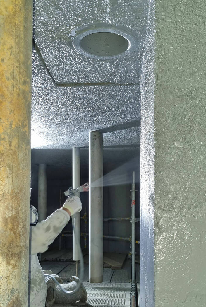 Tijdens een reguliere controle werd ontdekt dat de oude toplaag van de coating op het dak en de bovenste 2 meter van de slibgistingstank ernstig beschadigd waren door jarenlange blootstelling aan gassen. Om verdere aantasting van het beton te voorkomen, was het noodzakelijk om een nieuwe beschermende laag aan te brengen.