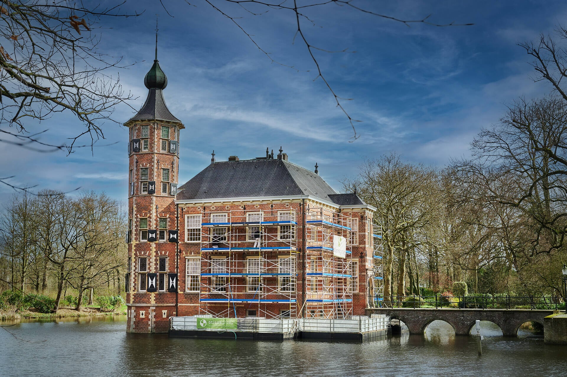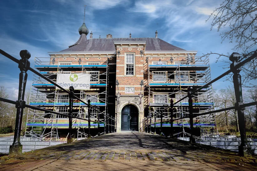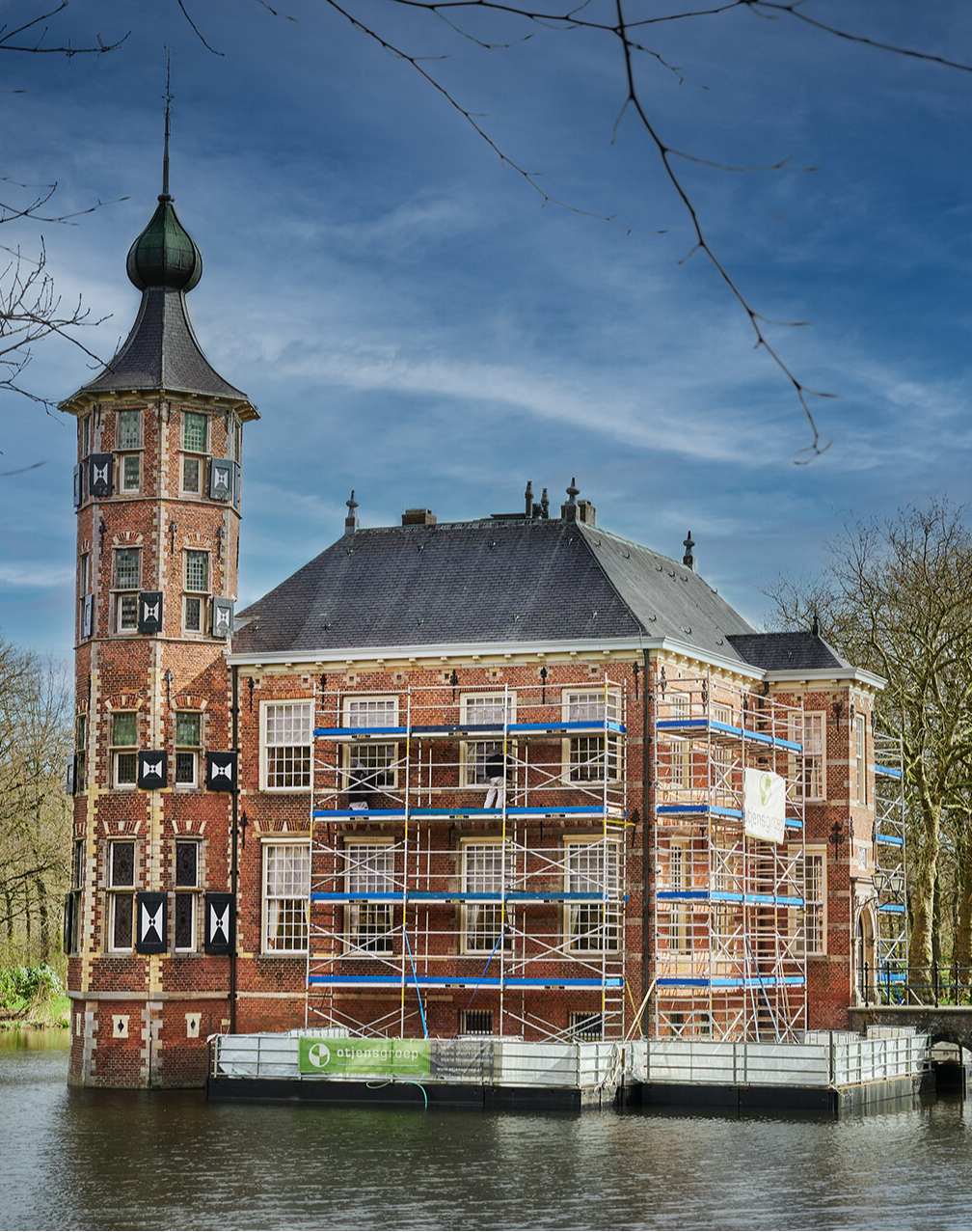 In 2016 heeft de Otjensgroep reeds schilderwerkzaamheden verricht aan Kasteel Bouvigne. Ditmaal zijn er echter grotere pontons geïnstalleerd en extra steigers geplaatst, zodat meerdere schilders gelijktijdig aan de gevel kunnen werken. Ondanks de uitdagingen die het natte voorjaar met zich meebracht, dienen de werkzaamheden tegen medio mei te zijn afgerond, aangezien er dan een bruiloft op het landgoed gepland staat.